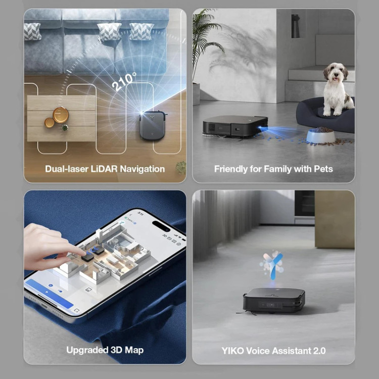 • اگر شما دارای حیوانات خانگی هستید، Ecovacs X2 Combo بهطور خاص برای جمعآوری موهای حیوانات و تمیز کردن محیطهای پرمشغله طراحی شده است.