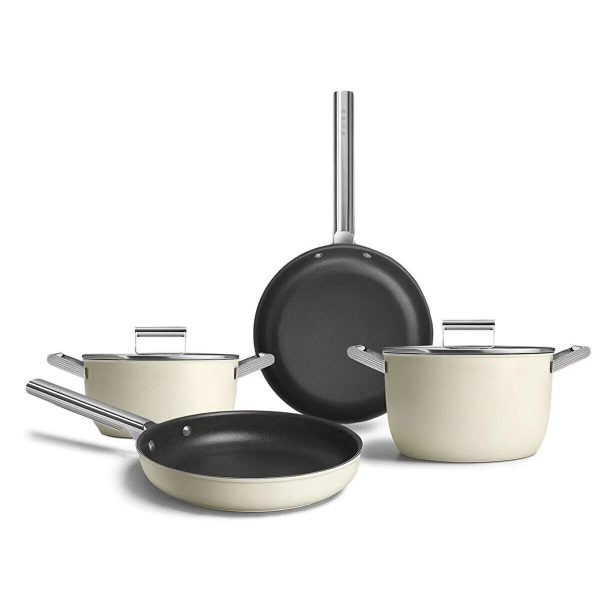ست ۵ پارچه قابلمه اسمگ رنگ کرم ( دو عدد قابلمه و یک ماهیتابه )