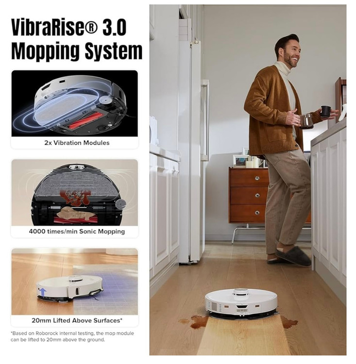 مجهز به دو ماژول لرزشی، این سیستم با سرعت ۴٬۰۰۰ لرزش در دقیقه، لکههای خشک و چربیها را بهطور مؤثر پاک میکند. علاوه بر این، ارتفاع آن تا ۲۰ میلیمتر تنظیم میشود تا هنگام تمیز کردن فرشها، رطوبت اضافی ایجاد نشود.