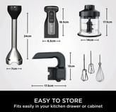 دارای عملکرد یخ خردکن / تعداد تنظیمات سرعت گوشتکوب تک سرعته به علاوه توربو / تعداد تنظیمات سرعت همزن ۵ سرعته / تعداد تیغههای گوشتکوب شش پره دارای تکنولوژی Anti Splash / دور در دقیقه ۱۵۵۰۰ دور